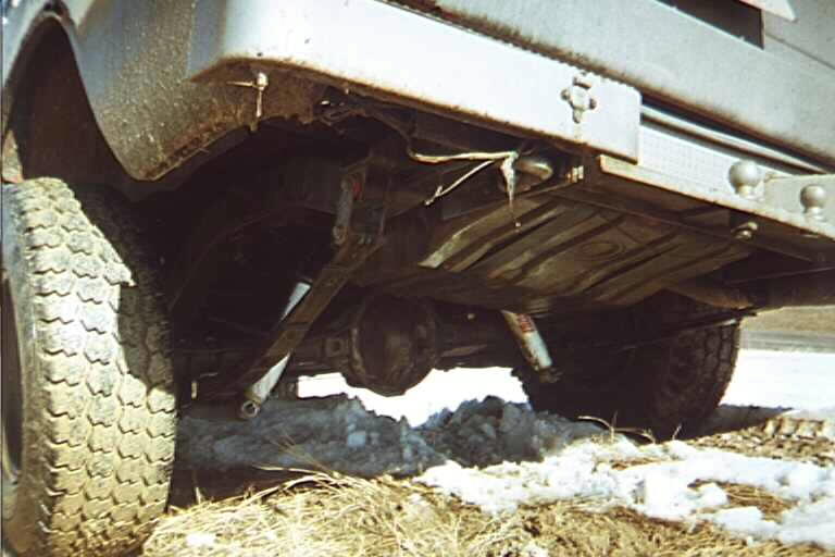 The passenger side rear tire is fully stuffed.. it nearly touches the rusted out section of the fender. This is one of my new 31x10.50" Cooper Discoverer STTs.. the fronts are still the BFG Trail TAs.