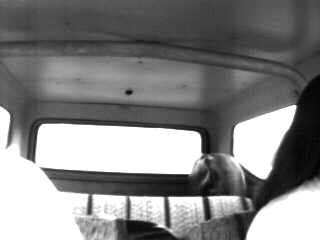 While traveling to Missoula, my fiance', Julie, asked if she could drive.. so, while she was driving, I plugged my handy little 12V - 120VAC converter into the lighter socket, fired up the laptop, and plugged in my black and white Connectix QuickCam and start taking some pics.. (and a few BIG AVIs) Sorry the pics are only 64 grays, but my color QuickCam chews up a LOT of CPU, and besides.. I was busy taking the B/W Cam out to my friend Dan, my Scout's former owner, so I had it handy..