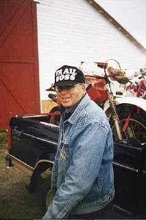 I wandered around for a bit, then decided it was time to finish trimming my darn passenger rear inner fender. I fired up the Scout, attached my air tank, kicked on the onboard air, and proceeded to take my air grinder to the inside of the fender. A half hour later, I had the offending hunk of sheet metal in my hand, and I tossed it into the trash in the barn, as I wandered over for my turn at the free ice cream, served up by Loretta Kelly and her childern.