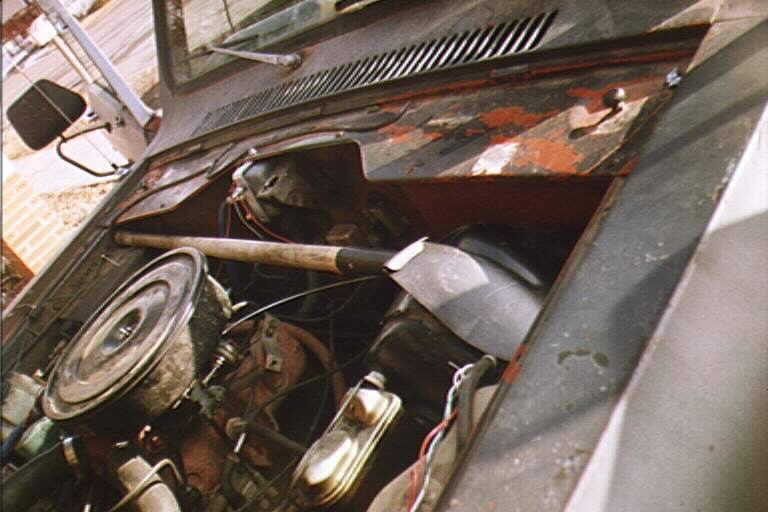 Howard Pletcher gave me the idea.. I think the picture should answer any questions. I had to saw about an inch off the very end of my $6 shovel to make it fit.. but it's a full length handle otherwise, and works great. A good upgrade idea would be a bungee cord, or some type of tie-down arrangment, to keep the shovel head from clanging from time to time.. with my new Lockright up front, I can't keep track of which "clicks and pops" I'm *supposed* to hear, and which are "trouble" signs..