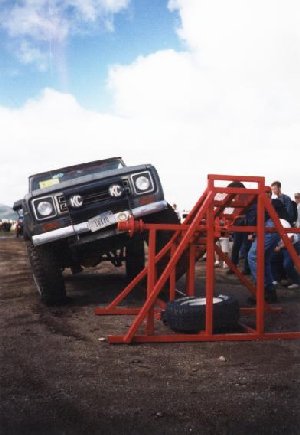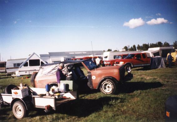 Willy and I fired up our 'Binders and headed to the big line-up to take our places and be judged. As I was backing into my spot, trying to get in-line with the others, I started to drive off the back of the dirt bank we were parking along! At first, I was alarmed.. then I thought.. Cool, I can show off my rear articulation! And so it went that every truck after me did the same thing. :-)