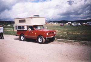 The next morning I made my farewells to Bill and Darrel and the others as they left to go wheelin'.. then I made my way to the showers, and let my sleeping bags dry out on top of the Scout while I showered. I then packed up camp (leaving the lantern, of course), visited with the McFarling children for a bit.. then helped out some with some folks from Kansas, trying to change out the input gear on their Dana 300.. and then I stopped to see Eldon and Rose as I left Fairplay, headed towards Moab.