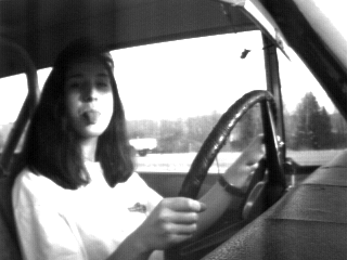 While traveling to Missoula, my fiance', Julie, asked if she could drive.. so, while she was driving, I plugged my handy little 12V - 120VAC converter into the lighter socket, fired up the laptop, and plugged in my black and white Connectix QuickCam and start taking some pics.. (and a few BIG AVIs) Sorry the pics are only 64 grays, but my color QuickCam chews up a LOT of CPU, and besides.. I was busy taking the B/W Cam out to my friend Dan, my Scout's former owner, so I had it handy..